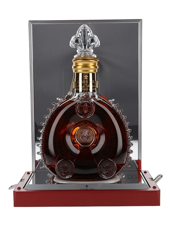 A bottle of Louis XIII de Rémy Martin Cognac. This is composed of Grande Champagne eaux-de-vie aged between 40 and 100 years and is presented in a Baccarat crystal decanter. The bottling code indicates this was bottled in 2021. This comes with a Louis XIII gift bag.