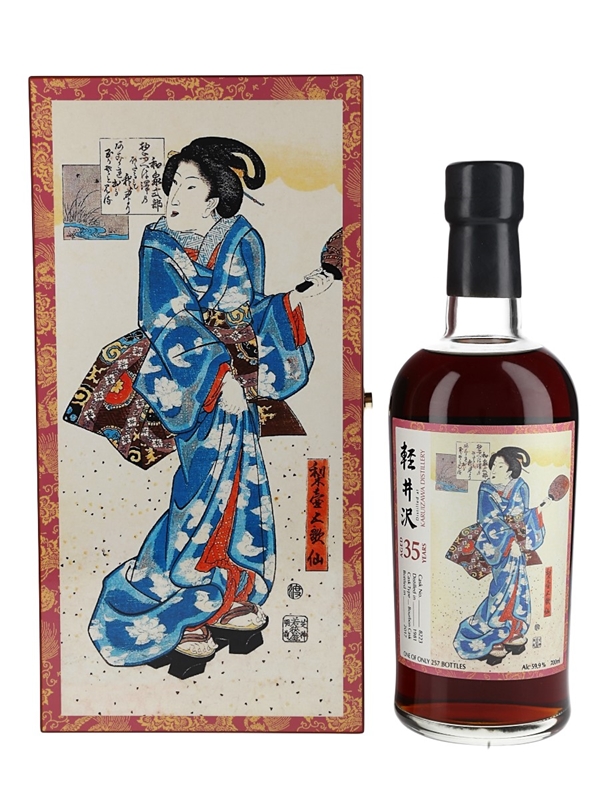 A bottle of Karuizawa 35 Year Old Single Cask Malt Whisky. This was distilled in 1981, matured in a single bourbon cask and bottled at cask strength in 2017. This comes in a presentation box and is part of the Splendid Age series.