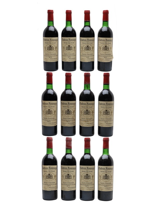 This lot contains twelve bottles of Château Fonroque 1973 Grand Cru Classé, from Bordeaux's Saint-Emilion appellation, produced by the Moueix family who have owned the property since 1931. Fonroque is a 20 hectare site with limestone, clay and sandy/silty soils, planted with 80% Merlot and 20% Cabernet Franc vines.