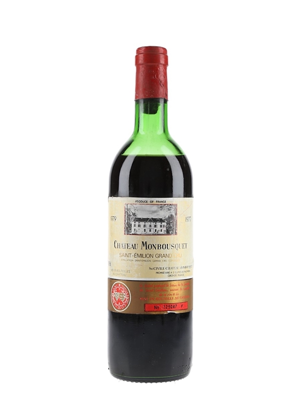 A bottle of 1979 Château Monbousquet Saint-Emilion Grand Cru from Bordeaux. The 30 hectare estate is planted with 70% Merlot, 20% Cabernet Franc and 10% Cabernet Sauvignon.