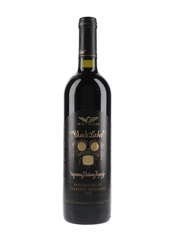 A bottle Wolf Blass Black Label Cabernet Shiraz Merlot 1998 from the Barossa Valley, South Australia, winner of the prestigious Jimmy Watson trophy in the 1999 Royal Melbourne Wine Show.