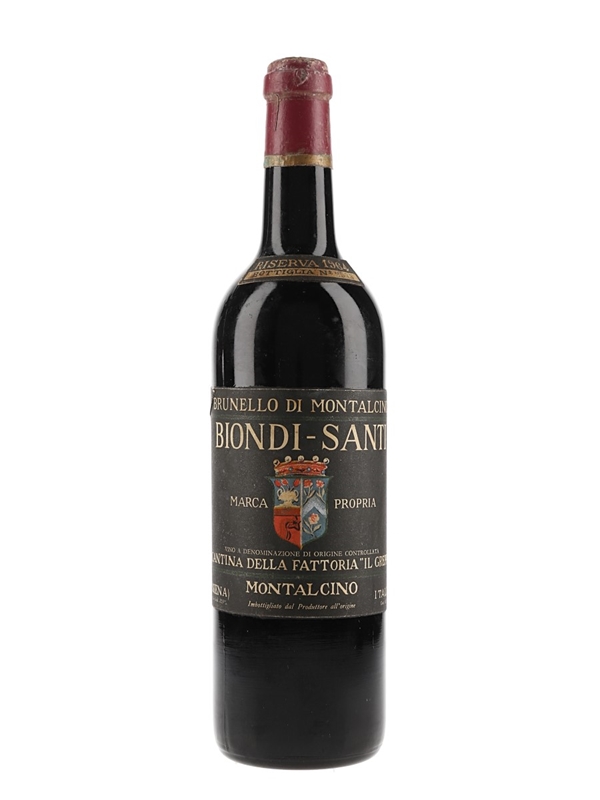 A bottle of 1964 Brunello di Montalcino Riserva produced and bottled by Biondi-Santi.