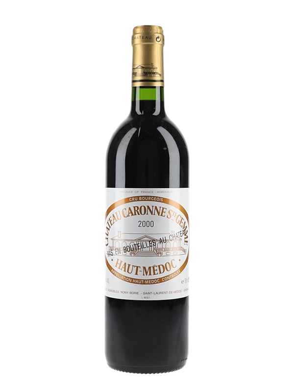 A bottle of 2000 Château Caronne Ste Gemme Cru Bourgeois from the Haut-Médoc appellation in Bordeaux.