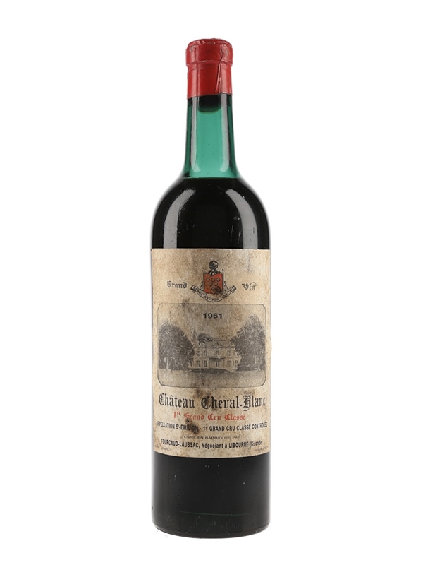 A bottle of 1961 Château Cheval Blanc Saint-Emilion 1er Grand Cru Classé bottled by Libourne Négociant Fourcaud-Laussac.
