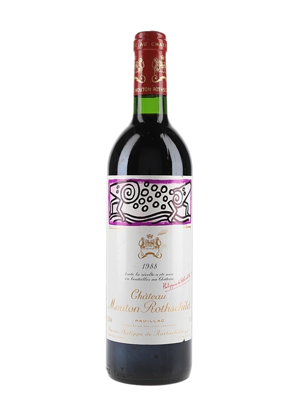 A bottle of Chateau Mouton Rothschild 1988 from Bordeaux's Pauillac appellation.