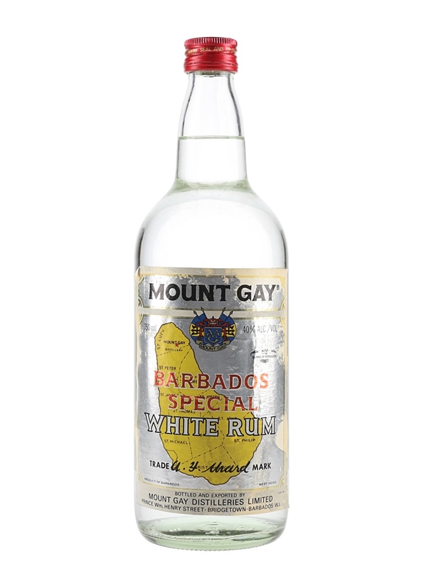 A bottle of Mount Gay Special White Rum, bottled and exported by Mount Gay Distilleries Limited, Prince Wm. Henry Street, Bridgetown, Barbados. We estimate this was bottled in the 1980s for the German market.