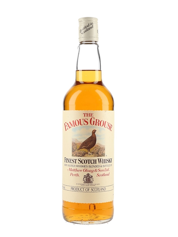 A bottle of The Famous Grouse Finest Scotch Whisky, blended and bottled by Matthew Gloag & Son Ltd. We estimate this was bottled in the 1980s.