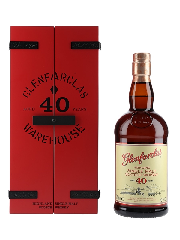 A bottle of Glenfarclas 40 Year Old Highland Single Malt Scotch Whisky.