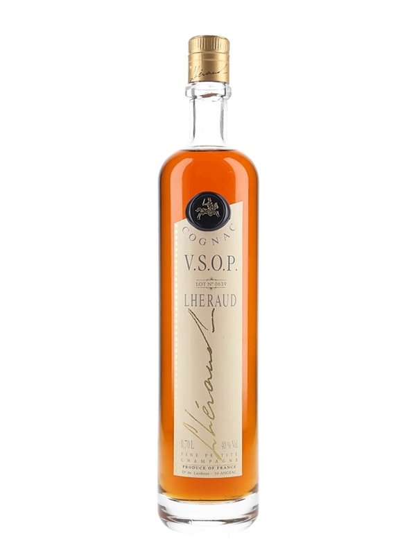 A bottle of Lheraud VSOP Petite Champagne Cognac, bottled at 40% ABV.
