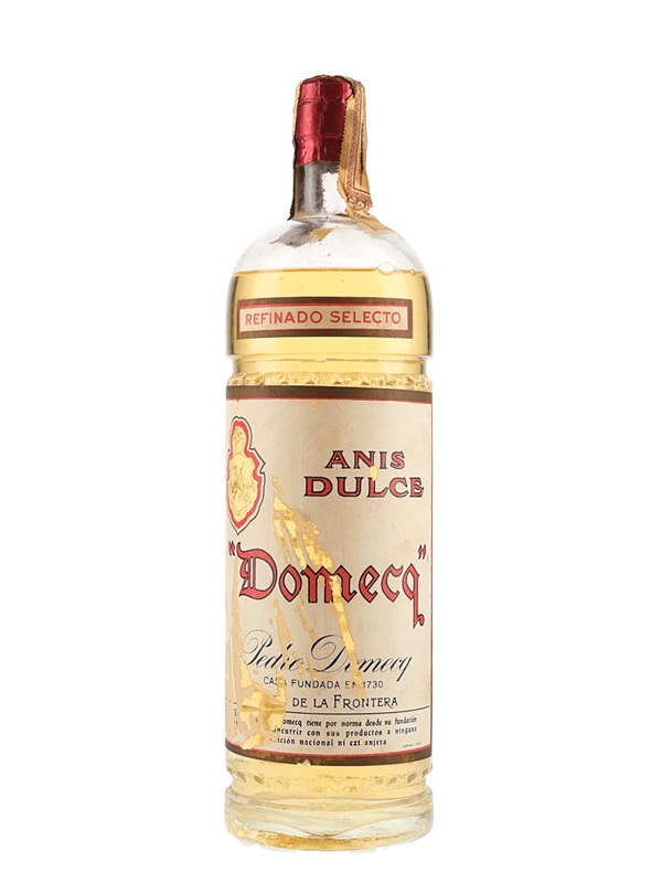 A bottle of Domecq Anis Dulce Refinado Selecto, an anise flavoured liqueur. We estimate this was bottled in the 1960s.