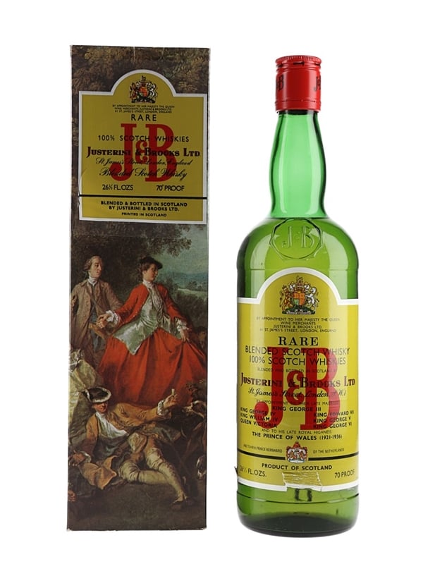 A bottle of J&B Rare blended Scotch Whisky. We estimate this was bottled in the 1970s.