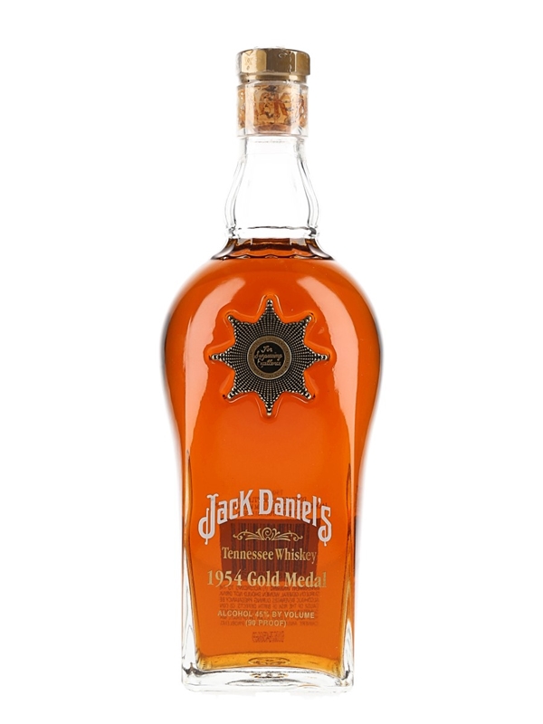 A bottle of Jack Daniel's 1954 Gold Medal Tennessee Whiskey. This is the sixth in the Jack Daniels Gold Medal Series and honours the 1954 Brussels Belgium Star of Excellence.