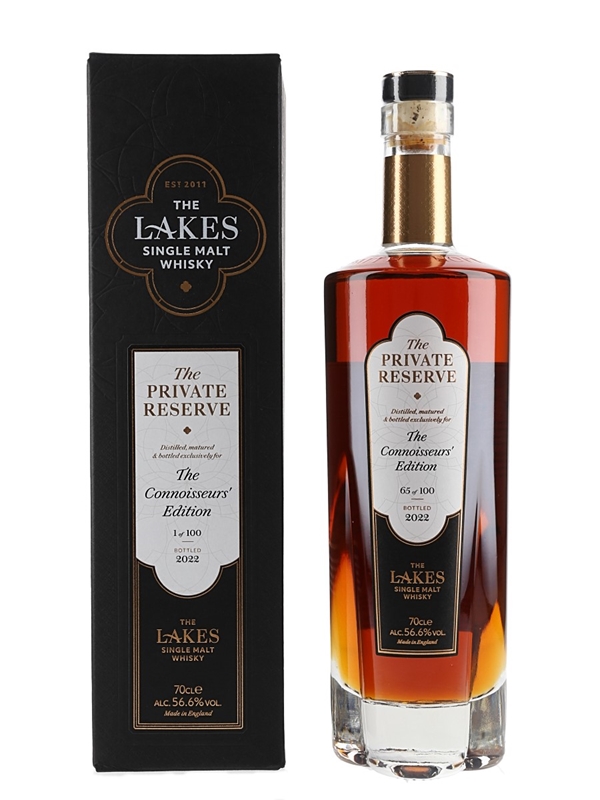 A bottle of Lakes Single Malt Whisky The Private Reserve Distilled, Matured & Bottled Exclusively For The Connoisseurs' Edition. This is a private bottling of 100 bottles.