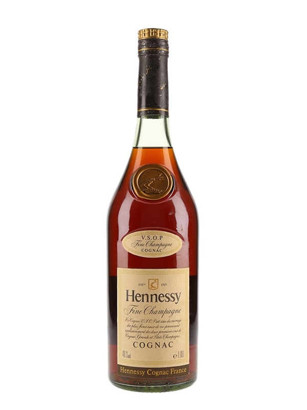 A litre bottle of Hennessy VSOP Fine Champagne Cognac. We estimate this was bottled in the 1980s.