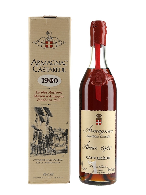 A bottle of Castarède Bas Armagnac, distilled in 1940 and bottled in 1983.