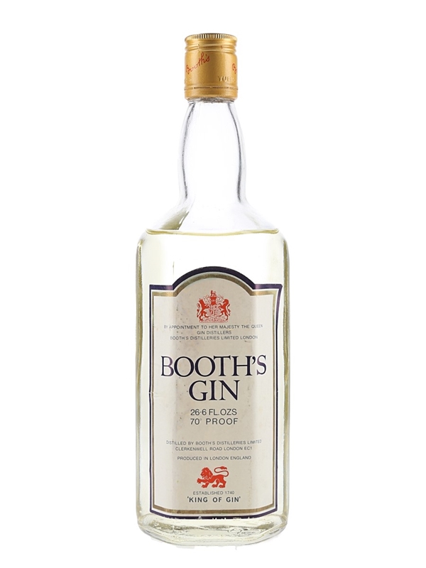 A bottle of Booth's Gin distilled by Booth's Distilleries Limited, London. We estimate this was bottled in the 1970s.