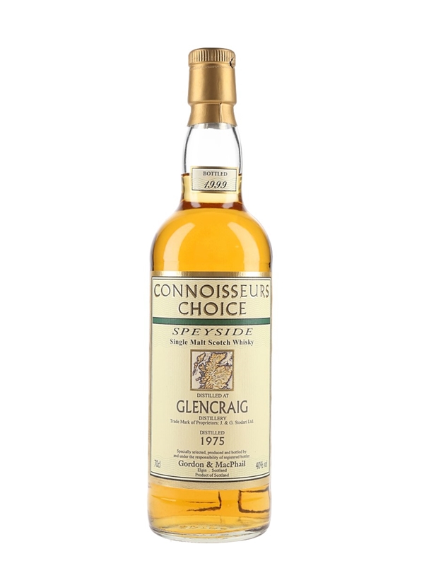 A bottle of Glencraig Single Malt Scotch Whisky. This was distilled in 1975 and bottled in 1999 by Gordon & MacPhail as part of the Connoisseurs Choice series.