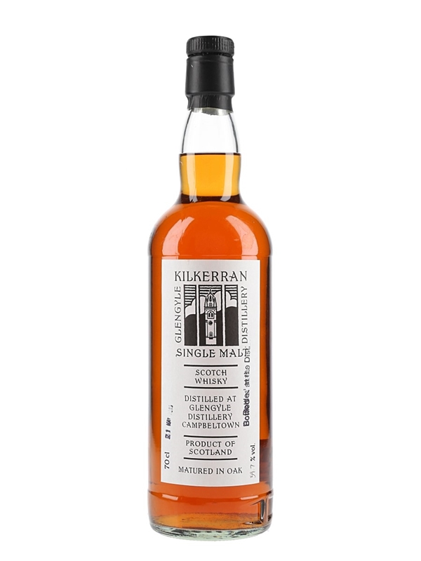 A bottle of Kilkerran Campbeltown Single Malt Scotch Whisky, distilled at Glengyle distillery and bottled in 2009 at 59.7% ABV.
