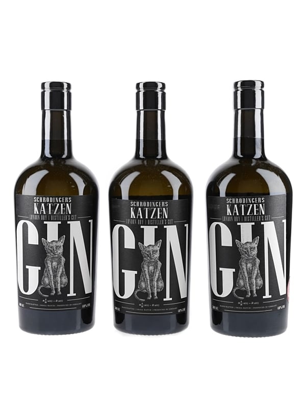 This lot contains 3 bottles of Schrodinger's Katzen London Dry Gin - Distiller's Cut produced in Germany by Heidelberg Spirits. These are from batch 004, and were bottled in November 2019.