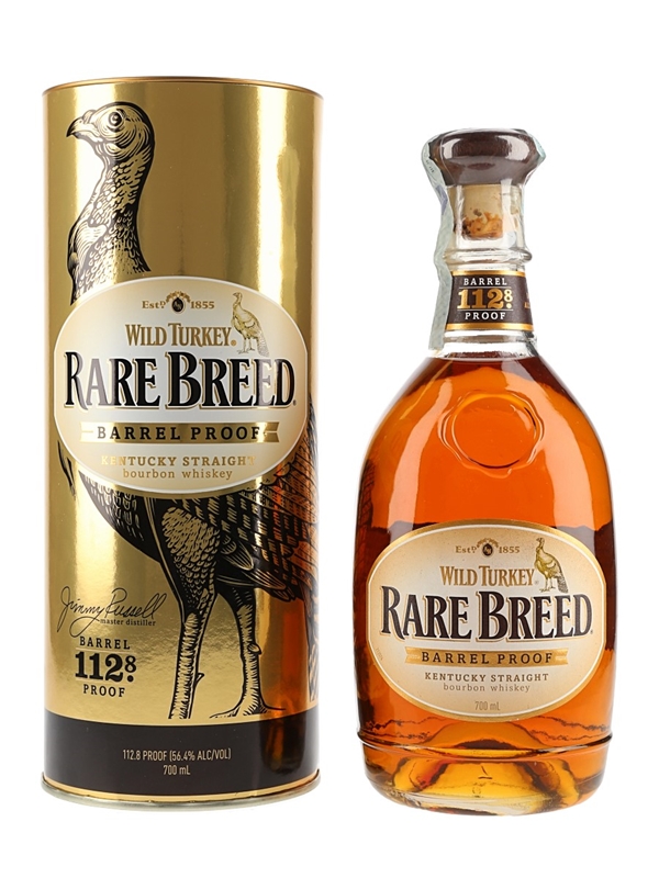 A bottle of Wild Turkey Rare Breed Kentucky Straight Bourbon Whiskey, bottled at barrel proof of 56.4% ABV.