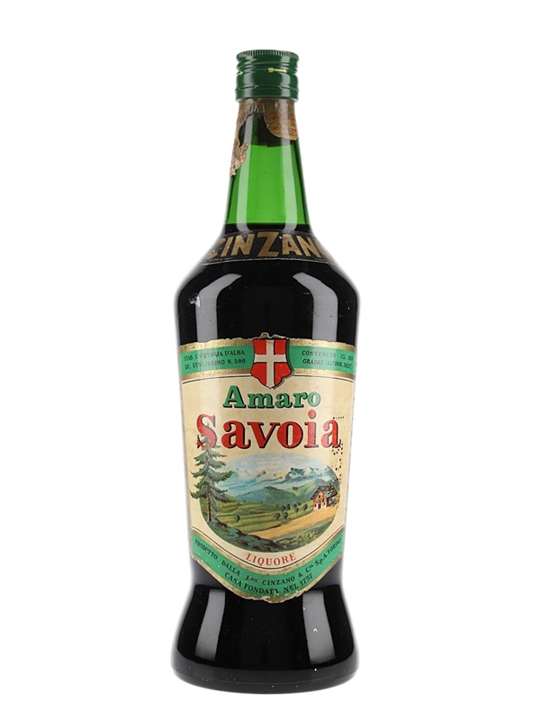 A bottle of Amaro Savoia, a bitter tonic liqueur produced in S. Vittoria D'Alba, Italy, and produced by Cinzano and bottled at 38.5% ABV. We estimate this was bottled in the 1960s.