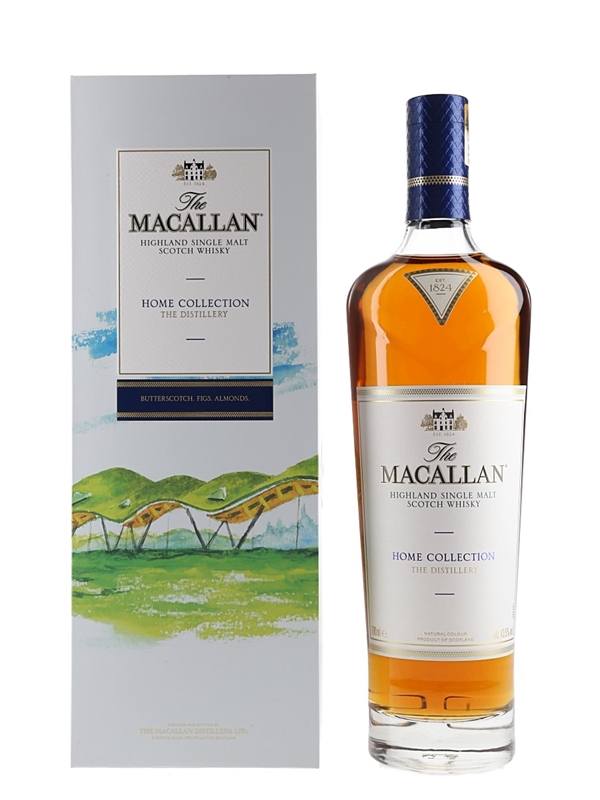 A bottle of The Macallan Home Collection The Distillery Single Malt Scotch Whisky. This is the first in the Home Collection series.