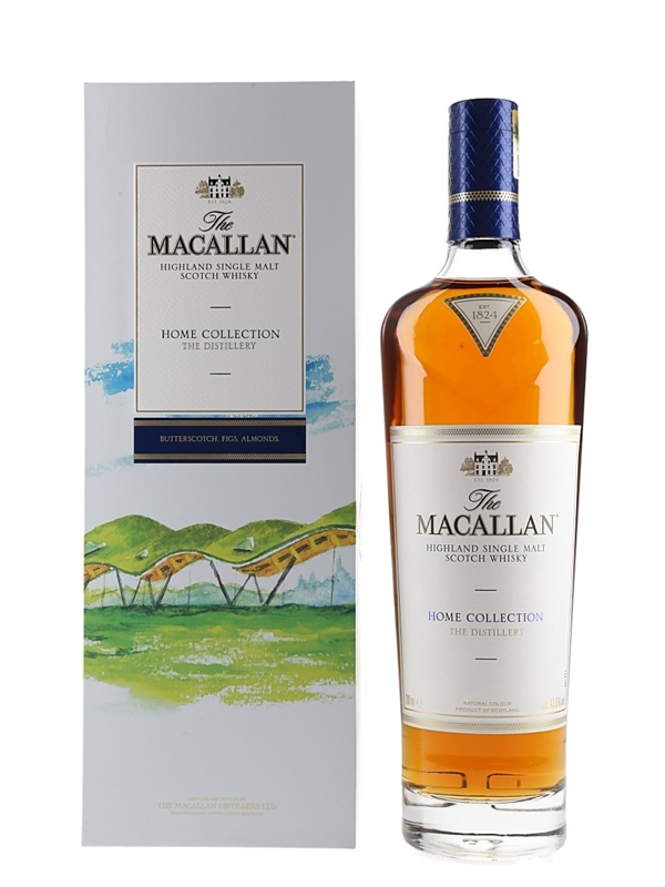 A bottle of The Macallan Home Collection The Distillery Single Malt Scotch Whisky. This is the first in the Home Collection series.