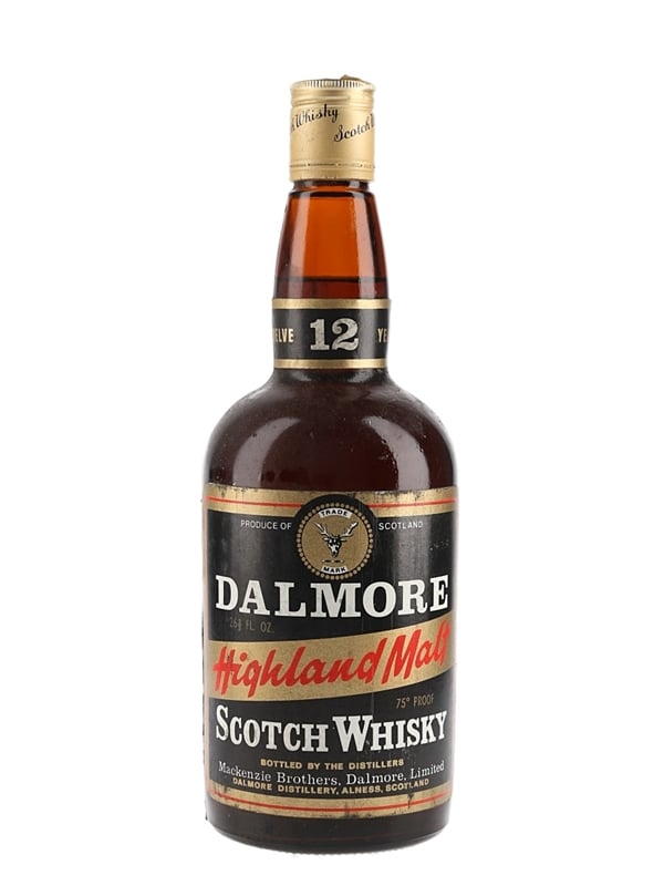 A bottle of Dalmore 12 Year Old Highland Single Malt Scotch Whisky, bottled by Mackenzie Brothers. We estimate this was bottled in the early 1970s.