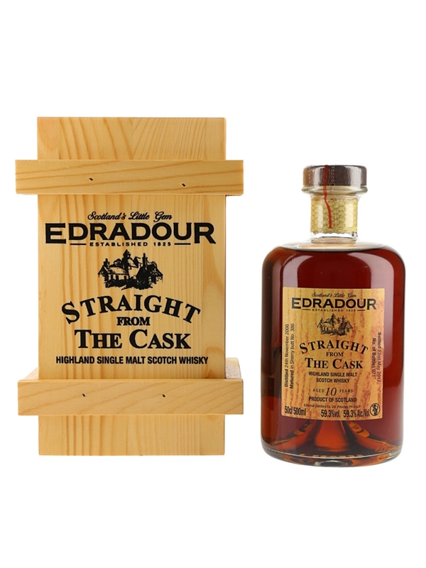 A 50cl bottle of Edradour 10 Year Old Single Malt Scotch Whisky. This was distilled on 24 November 2006, matured in a sherry butt and bottled straight from the cask on 22 May 2017.