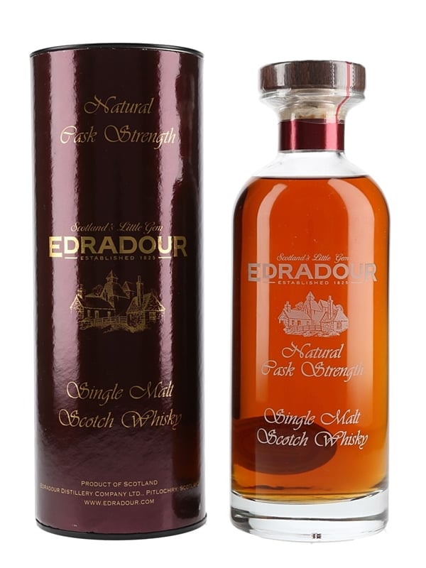 A bottle of Edradour Natural Cask Strength Single Malt Scotch Whisky. This was distilled on 28 August 2002, matured in a single cask and bottled at natural cask strength on 6 February 2017.