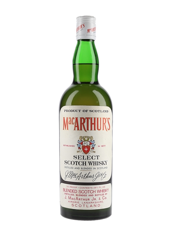 A bottle of MacArthur's Select Scotch whisky, produced by J.MacArthur Jr & Co of Airdrie in Lanarkshire. We estimate this was bottled in the 1960s.
