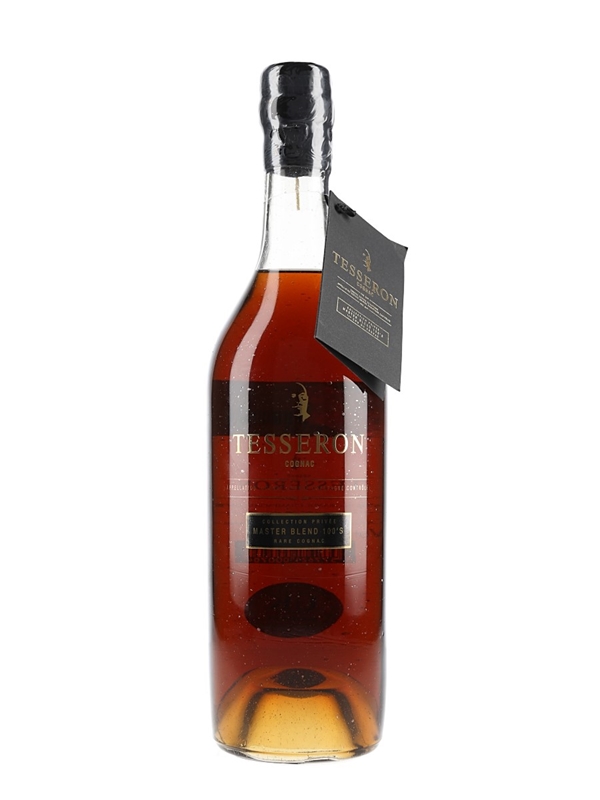 A bottle of Tesseron The Master Blend 100`s. This expression has been made using a blend of 100 different Grande Champagne eaux-de-vie. This one of 143 bottles.