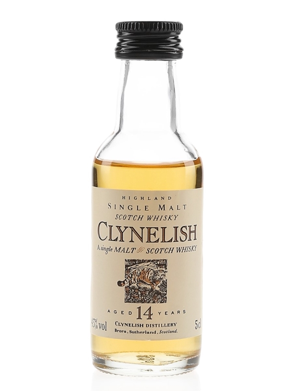 A miniature bottle of Clynelish 14 Year Old Highland Single Malt Scotch Whisky from Diageo's Flora & Fauna series.