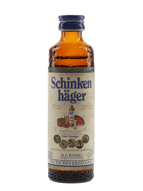A miniature bottle of Schinken Hager liqueur produce of Germany.