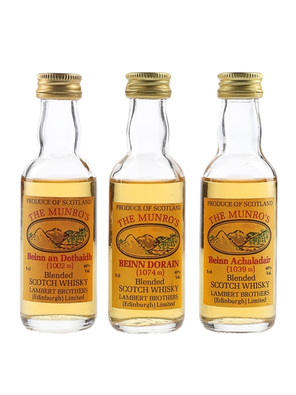 This lot contains three miniature bottles of The Munro's Blended Scotch Whisky celebrating Scotland's mountains.