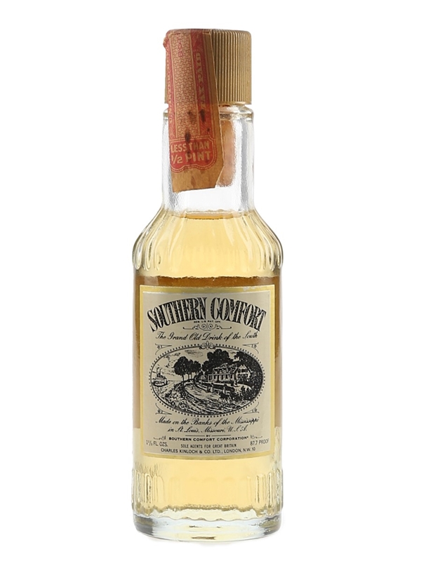 A miniature bottle of Southern Comfort, The Grand Old Drink Of The South, Made On The Banks Of The Mississippi In St Louis, Missouri, USA.