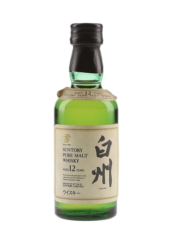 A miniature bottle of Suntory Hakushu 12 Year Old Pure Malt Whisky from Japan. We estimate this was bottled in the 1990s.