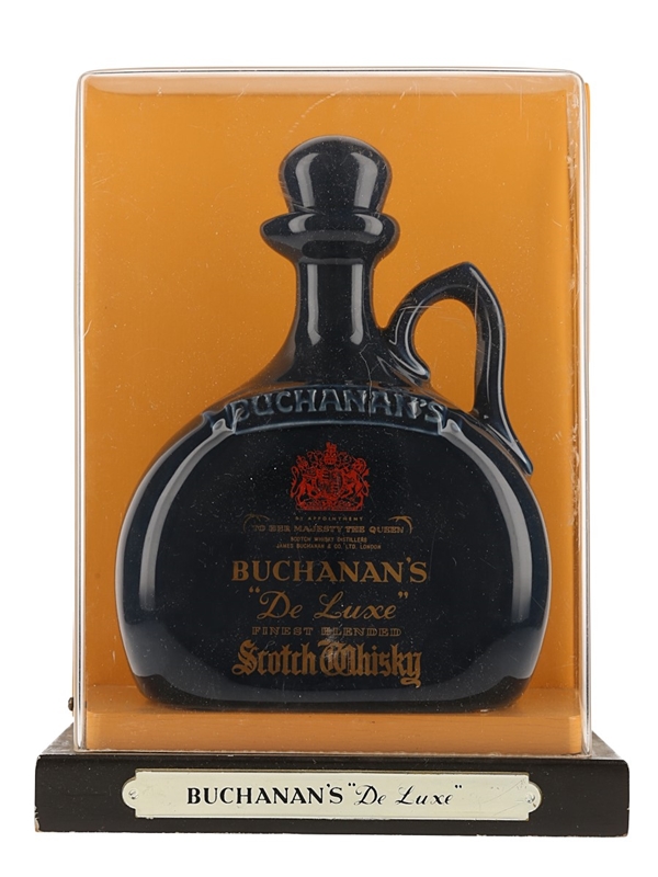 An empty display bottle of Buchanan's De Luxe Scotch Whisky for hospitality and retail point of sale display purposes.