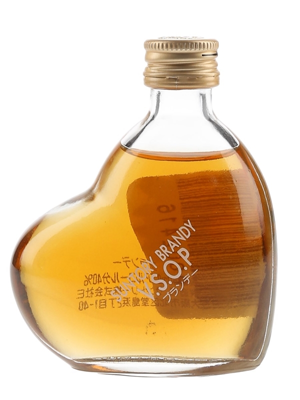 A miniature bottle of Suntory VSOP brandy presented in a heart shaped glass bottle. We estimate this was bottled in the 1990s.