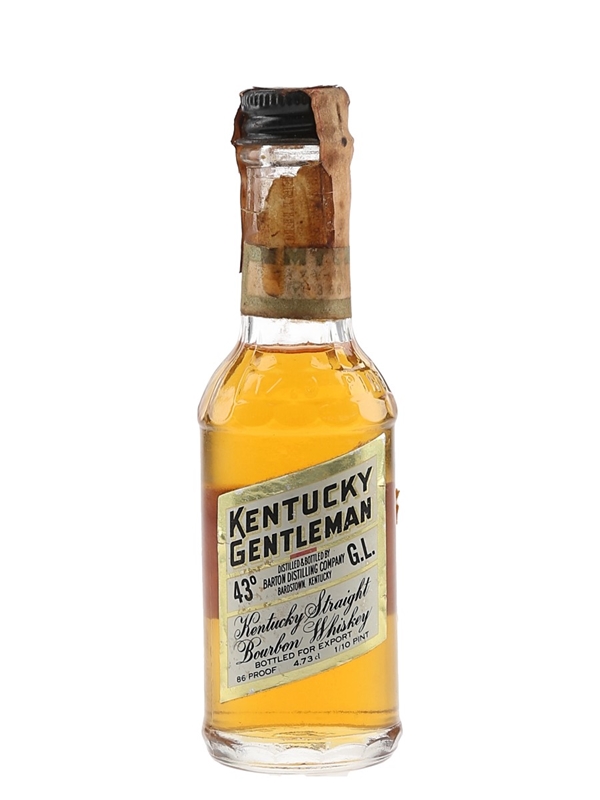 A miniature bottle of Kentucky Gentleman, a Kentucky Straight Bourbon Whiskey distilled and bottled by Barton Distilling Company. We estimate this was bottled in the 1960s to 1970s.