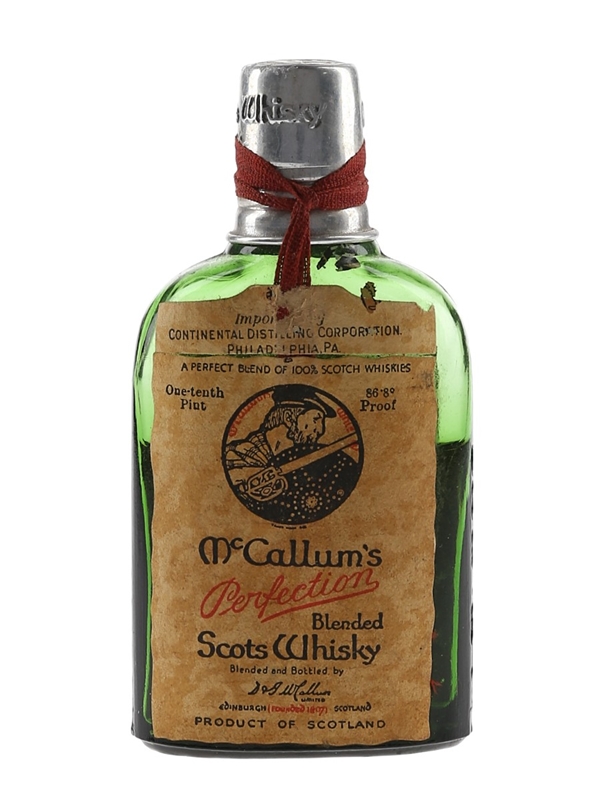 A miniature bottle of McCallum's Perfection Blended Scots Whisky, produced by D & J McCallum Ltd. We estimate this was bottled in the 1950s to 1960s.