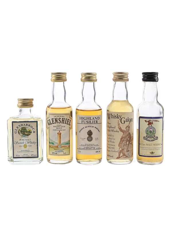 Highland Fusilier 8 Year Old, Glenshiel, Glendarroch, Whisky Galore & Inverness Caledonian 12 Year Old Bottled 1980s-1990s 5 x 5cl / 40%