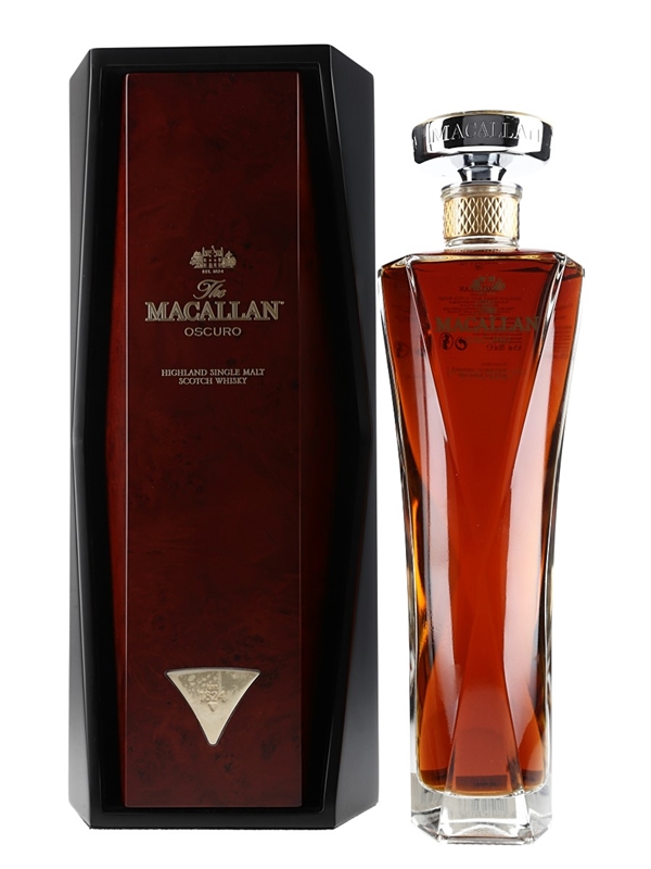 A bottle of The Macallan Oscuro Highland Single Malt Scotch Whisky from The 1824 Collection. This was drawn exclusively from sherry seasoned oak casks filled between 1987 and 1997, a high proportion of which are first fill.