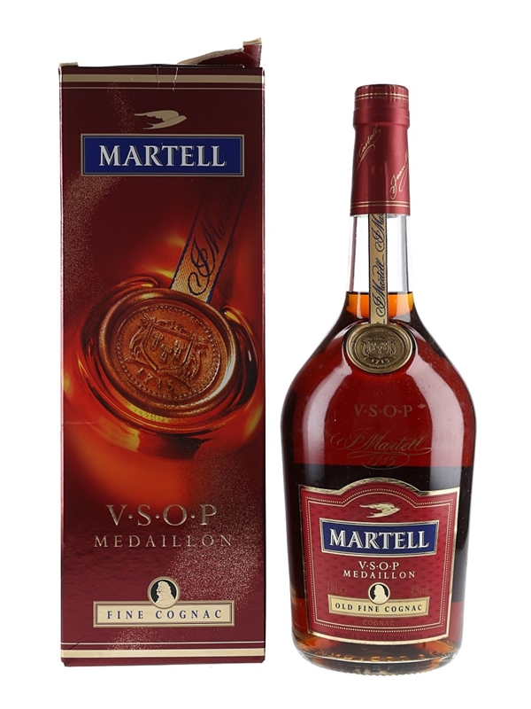 A litre bottle of Martell VSOP Medaillon Old Fine Cognac.