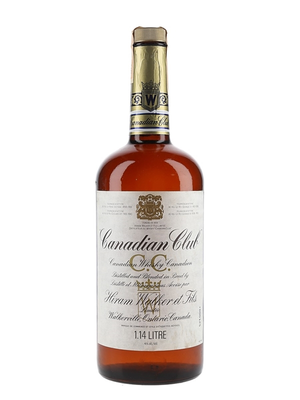 A 114cl bottle of Canadian Club Canadian Whisky, produced by Hiram Walker & Sons Limited. The Canadian tax strip reads 1978. This indicates that the youngest whisky in the bottle was distilled in 1978.