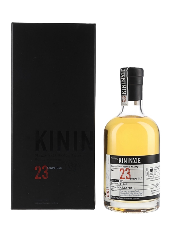 A 35cl bottle of Kininvie 23 Year Old Single Malt Scotch Whisky. This third release was distilled in 1991, matured for 23 years in a mix of hogshead and sherry butts and bottled at 42.6% ABV.
