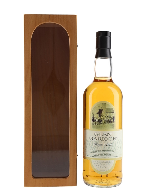 A bottle of Glen Garioch 15 Year Old single malt Scotch whisky, bottled to celebrate the bi-centenary of the distillery in 1997.