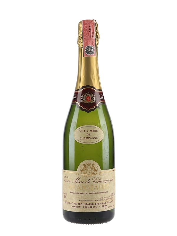 A bottle of Jeanmaire Vieux Marc De Champagne . This was bottled for the Italian market.