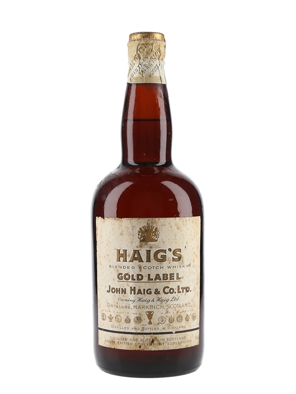 A bottle of Haig's Gold Label Blended Scotch Whisky, sealed with a spring cap closure. We estimate this was bottled in the 1950s.