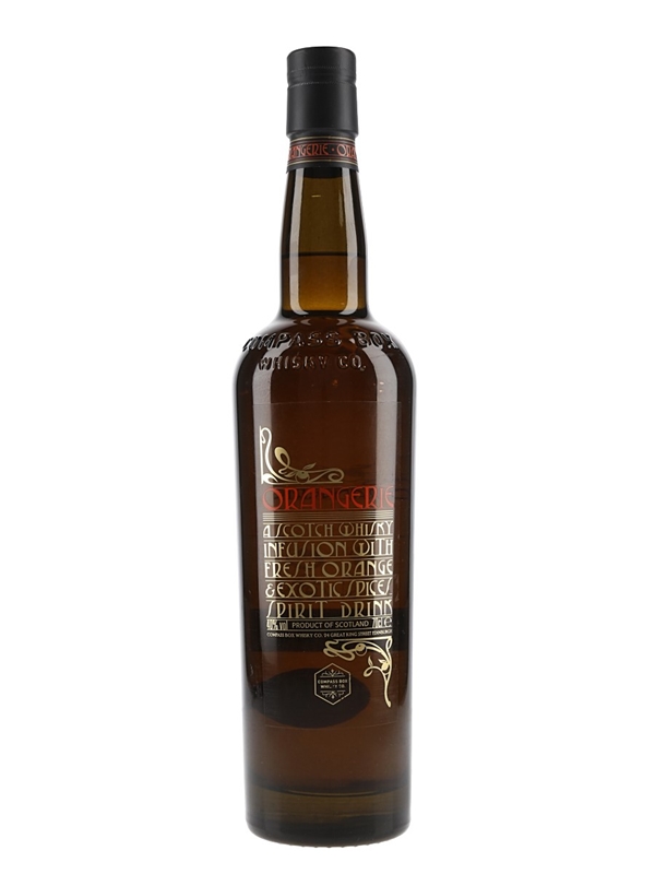 A bottle of Orangerie Whisky Infusion produced by independent bottler Compass Box.